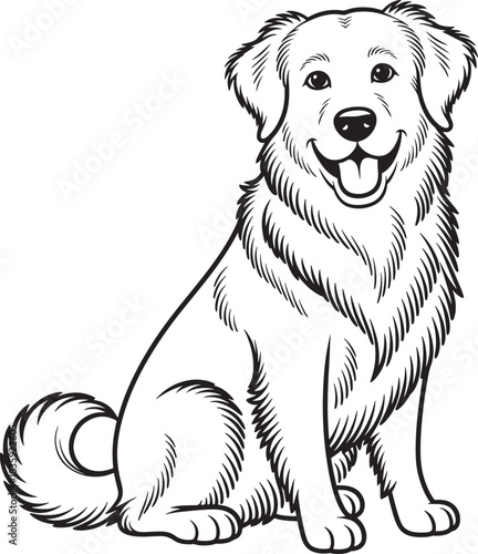 Fototapeta premium Happy dog line art illustration golden retriever sitting