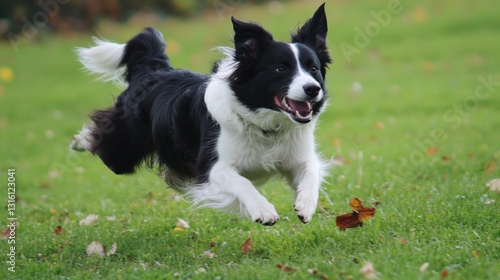 © musa, Fototapeta premium Happy dog running in a grassy field