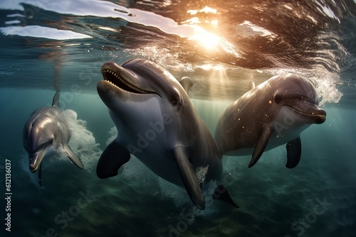 © Pedro, Fototapeta premium happy dolphins swimming on the ocean