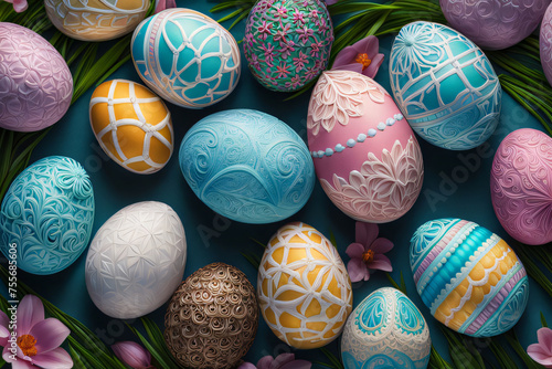 © Shadoweee, Obraz premium Happy Easter bunny egg background