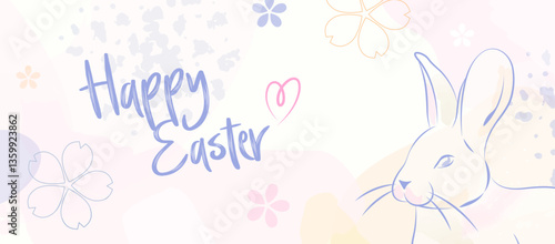 Fototapeta premium Happy Easter Bunny Pastel Banner. Soft Spring Design Background with...