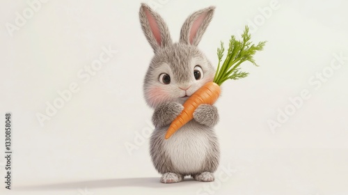 © SEOPHOTO, Obraz premium Happy easter bunny with carrot spring illustration joyful cute rabbit