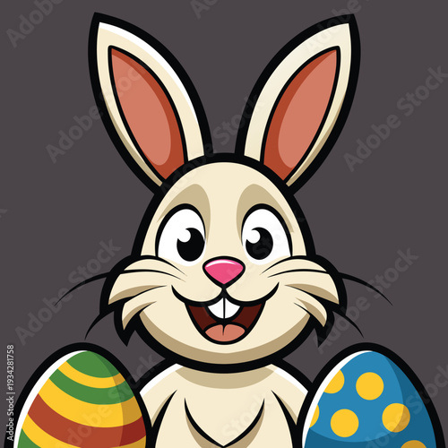 Obraz premium Happy Easter Bunny with Decorated Eggs Vector Illustration