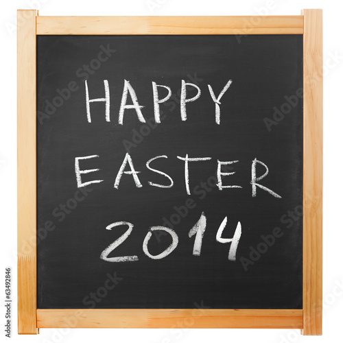Obraz premium Happy Easter 2014 chalk handwritten on classic blackboard