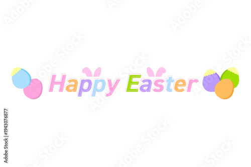 Obraz premium カラフルなHappy Easterロゴとイースターエッグ|Colorful Happy Easter Typography with Easter...