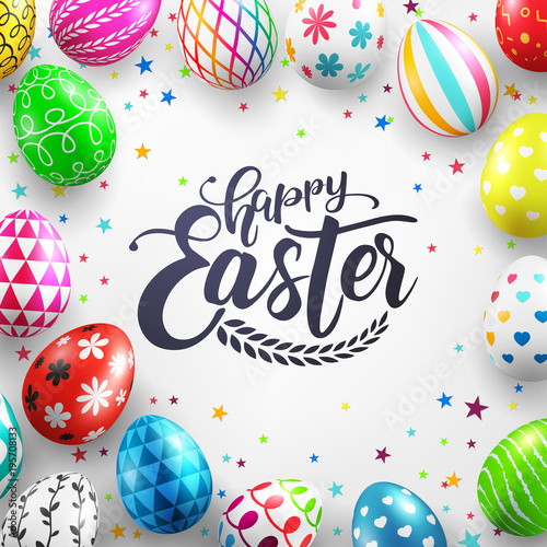© Fotomay, Obraz premium Happy Easter Day with Colorful Painted Easter Eggs.Vector illustration EPS10