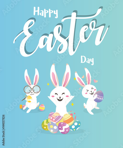 Obraz premium Happy easter day with white Easter rabbit.