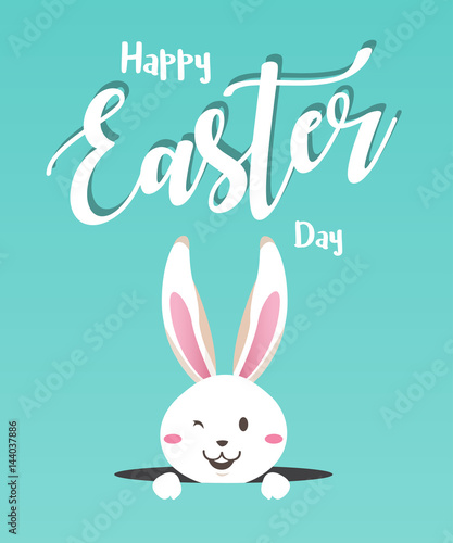 Obraz premium Happy easter day with white Easter rabbit.