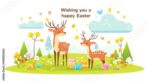Obraz premium Happy Easter Deer Meadow: Springtime Celebration