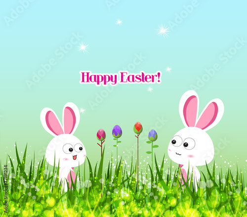 © Big Pearl, Fototapeta premium Happy easter eggs and bunny