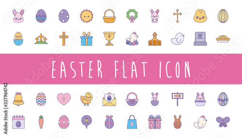 © djvstock, Fototapeta premium Happy easter flat style icon set vector design
