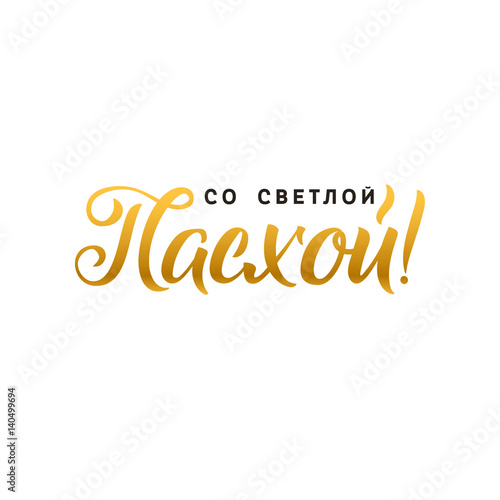 © Olga Lots, Fototapeta premium Happy Easter hand lettering modern calligraphy style. Vector Illustration