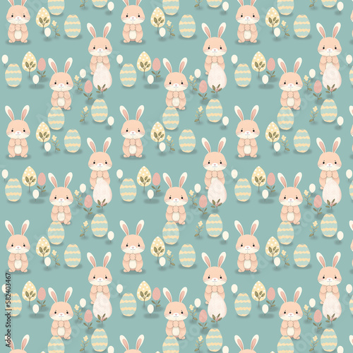 © Chunyaphat, Obraz premium Happy Easter Seamless Patterns