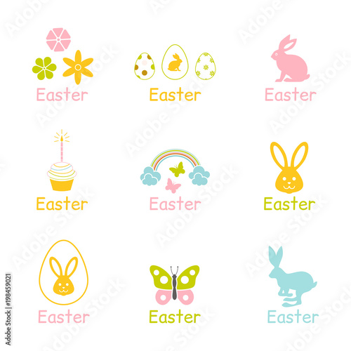 © nadia1992, Fototapeta premium Happy Easter typography design set.
