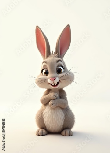 © Ksenia, Obraz premium Happy easter wallpaper with cartoon bunny holding an easter eggs and flowers around