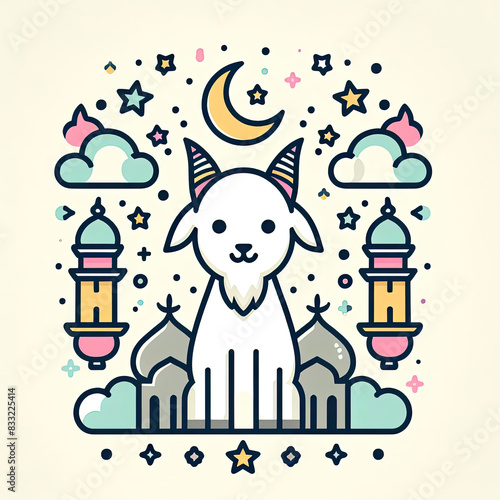 © Dwi, Naklejka premium happy eid al adha with simple art illustration