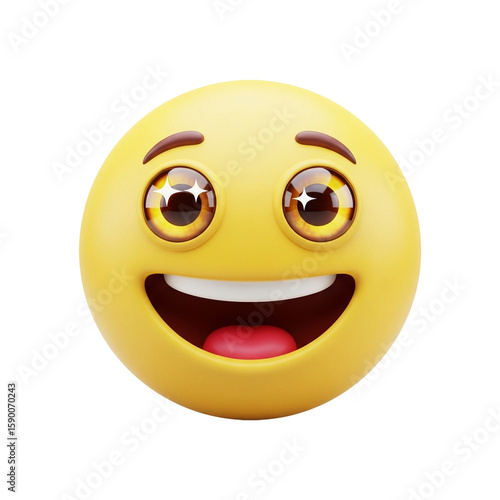 Fototapeta premium Happy Emoji – Big Smile with Glossy Eyes – 3D Clay PNG Icon