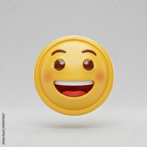 © Stock, Fototapeta premium Happy Emoji Face 3D Render on White Background