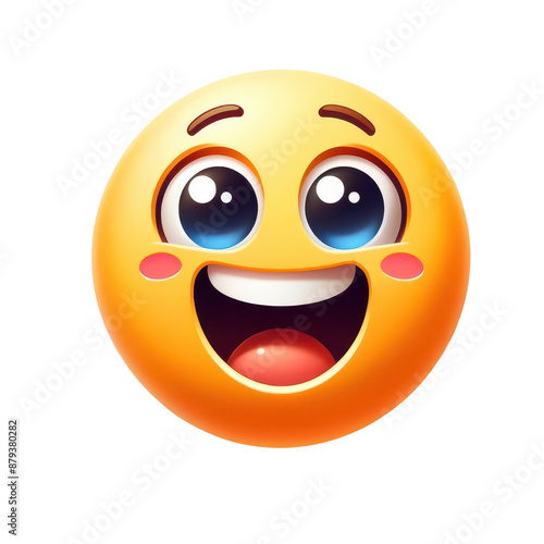 © viperagp, Fototapeta premium Happy emoji face with wide eyes and open mouth isolated on white background