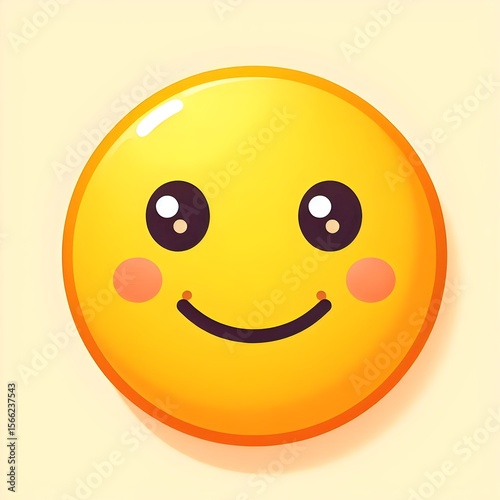 Fototapeta premium Happy emoji icon with joyful expression is represented in clean flat style over light-colored background.