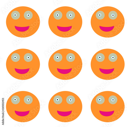 © DCT ART, Fototapeta premium Happy emoji orange faces pattern on white background. Cute style for fabric, t-shirt, interior design, website and other.