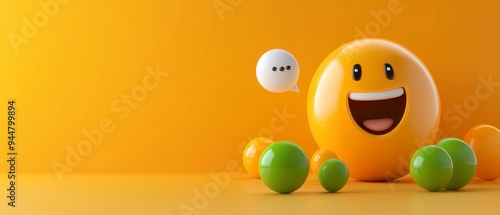 Fototapeta premium Happy Emoji with Chat Bubble, Playful Yellow and Green Spheres, Fun...