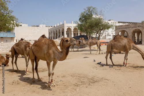 © Tomsickova, Fototapeta premium Happy european family, visiting Doha during the hot summer months