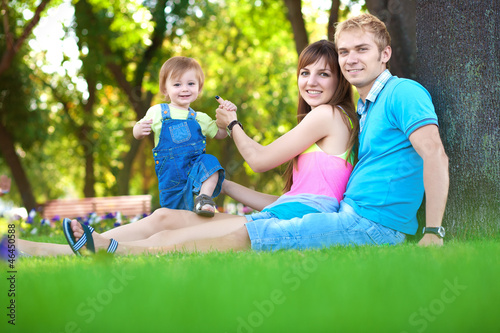 © Dmytro Titov, Fototapeta premium happy family are resting in the green summer park