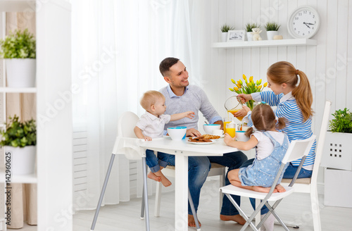 © JenkoAtaman, Obraz premium Happy family at breakfast