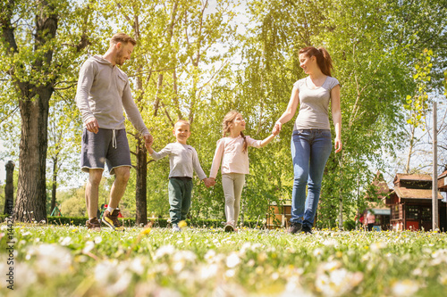 © liderina, Fototapeta premium Happy family heaving fun in the meadow.
