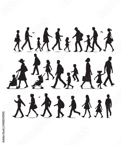 © Amir, Fototapeta premium Happy family Illustrations Silhouette set. Silhouettes on isolated background.