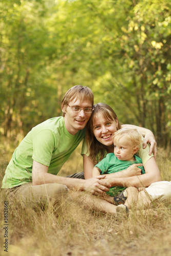Fototapeta premium Happy family in summer forest