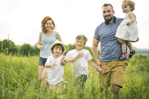 © Louis-Paul Photo, Fototapeta premium Happy family in the meadow