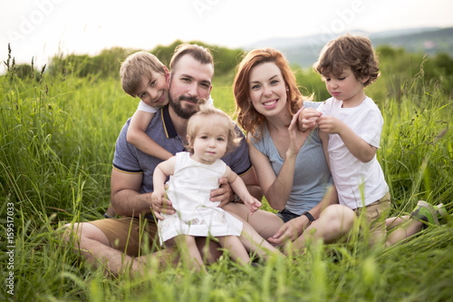 © Louis-Paul Photo, Fototapeta premium Happy family in the meadow