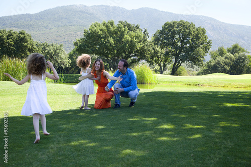 © COSPV, Obraz premium Happy family is enjoying at park on a weekend day