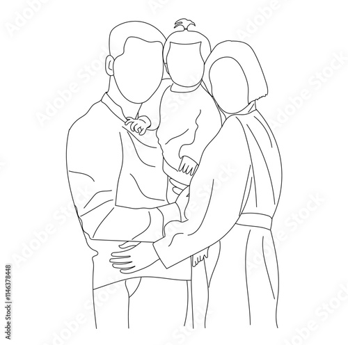 Fototapeta premium Happy Family Line Art Mom, Dad, and Son drawing illustration