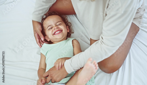 © Thanumporn, Obraz premium Happy family love, mother and her daughter, her daughter playing and hugging.