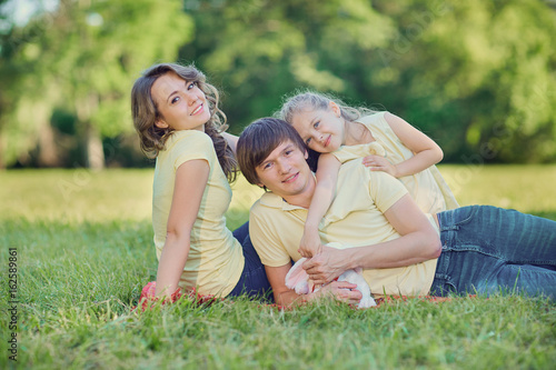 © Studio Romantic, Fototapeta premium Happy family lying on grass in park.