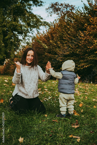 © Kate, Fototapeta premium happy family mom and son on a walk