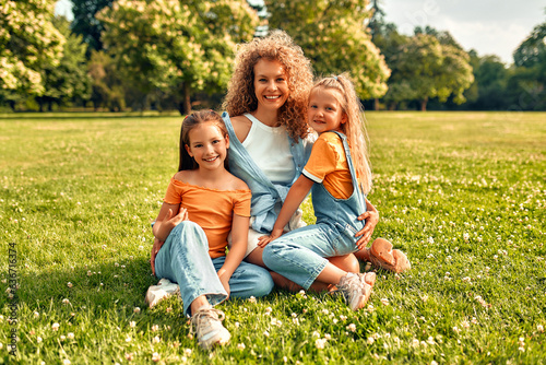 © Valerii Apetroaiei, Fototapeta premium Happy family relaxing in the park