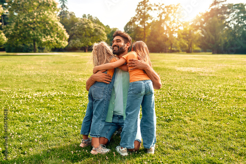 © Valerii Apetroaiei, Fototapeta premium Happy family relaxing in the park