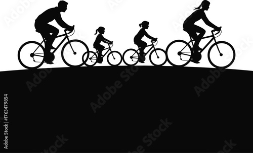 Obraz premium Happy family riding bicycles together outdoors silhouette