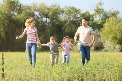 © Pixel-Shot, Obraz premium Happy family running in park on summer day