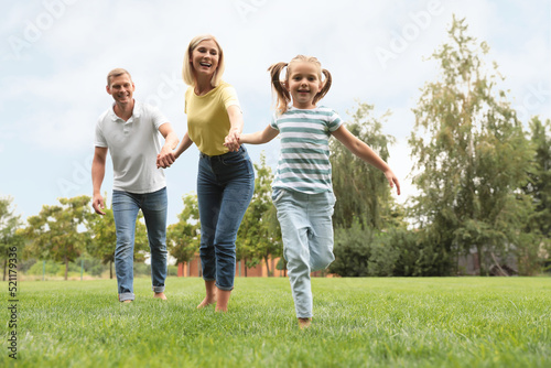 © New Africa, Fototapeta premium Happy family running in park on summer day