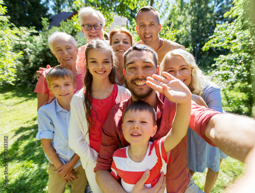 © Syda Productions, Fototapeta premium happy family taking selfie in summer garden
