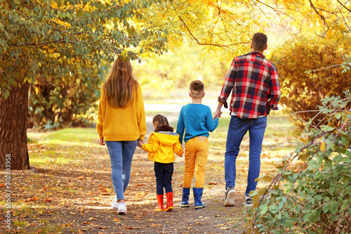 Fototapeta premium Happy family walking in autumn park