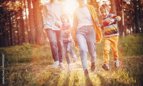 © candy1812, Fototapeta premium Happy family walking in the summer park