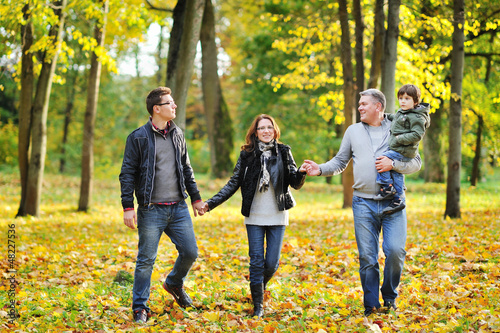Obraz premium Happy family walking together in a park