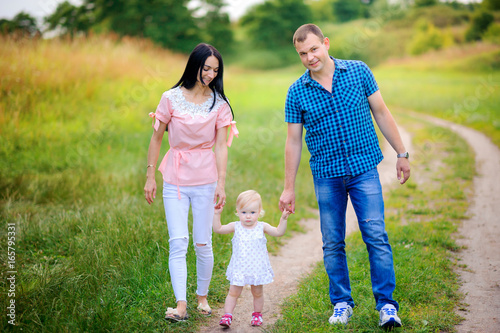 © Tortuga, Fototapeta premium happy family walks in the park, amicably hold hands and smile