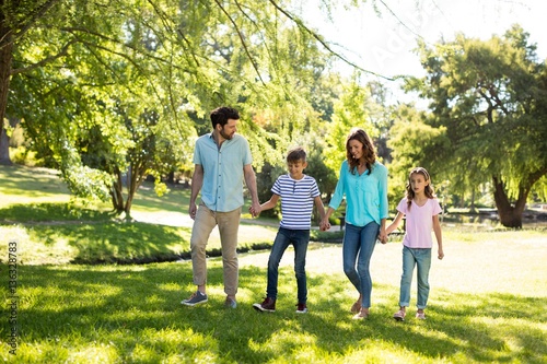 © WavebreakMediaMicro, Obraz premium Happy family with hand in hand walking in park